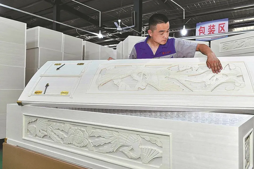 日本生產的棺木大多是實木,對雕刻工藝要求極高。而曹縣是傳承了百年的“木藝加工之鄉”,有得天獨厚的雕刻人才資源,完全可以做到批量生產。