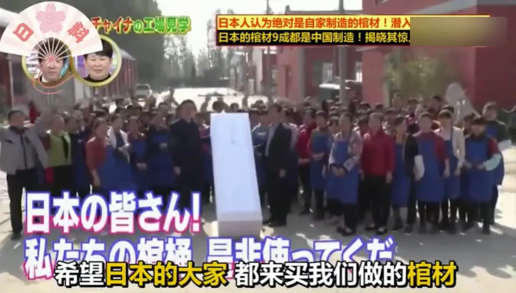 日本的綜藝節目《不可思議的世界》裏,一羣中國大媽為曹縣棺材打call:“日本的各位,請一定要使用我們製作的棺材喔!”