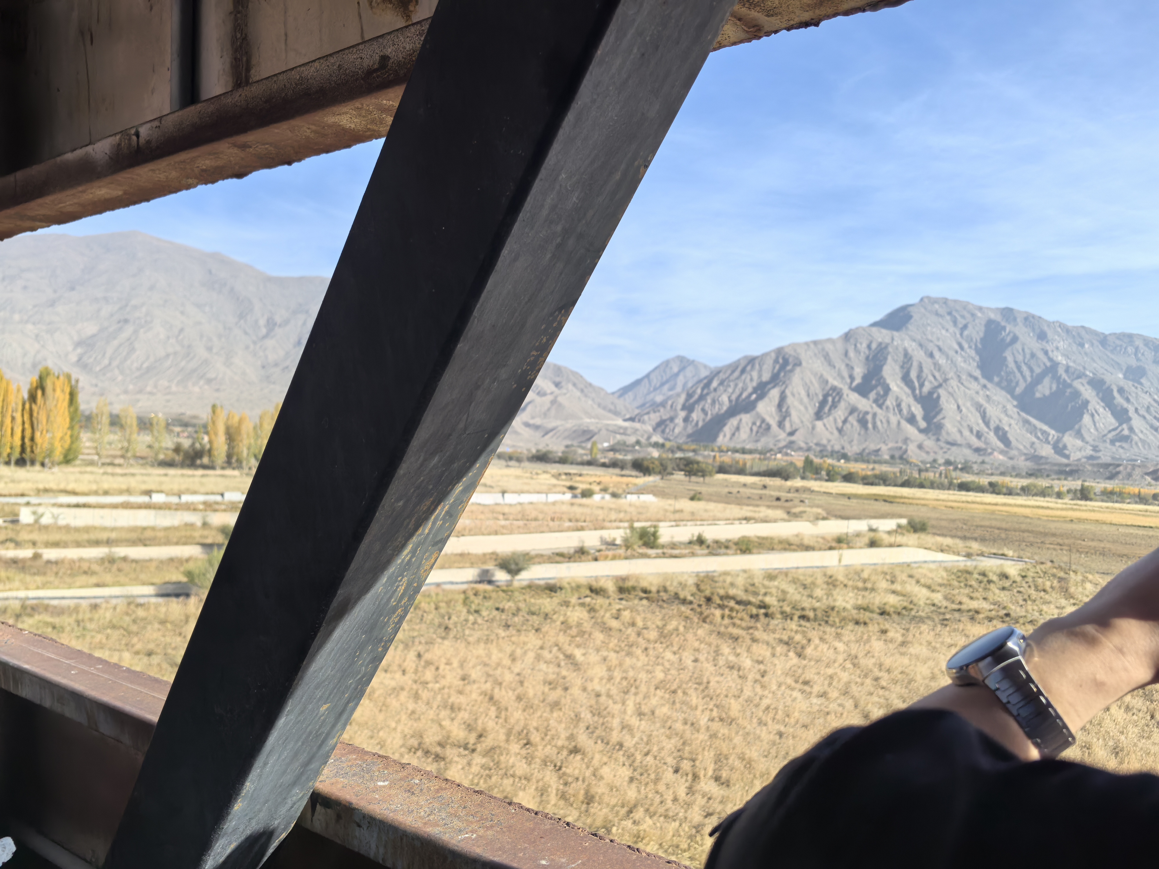 沿着鋼梯一步步往上爬,雖然有點累,但心情卻格外興奮。到了塔頂,整個園區的景色盡收眼底。遠處的羣山,近處的建築,還有那一望無際的戈壁灘,都顯得那麼壯闊。我忍不住拿出手機,拍了好多照片。下了塔,我們繼續往前走。