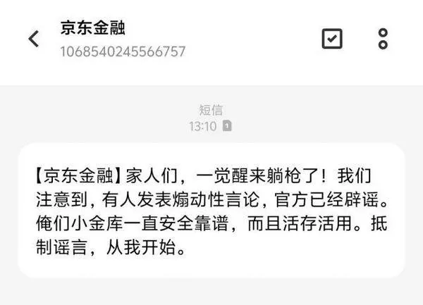 就連京東金融也是京東自己搞崩的,試問哪個現金流吃緊的公司會做出羣發用户短信“我們沒有被擠兑!”這樣的天菜行為??