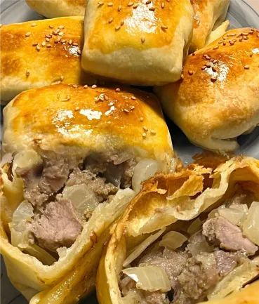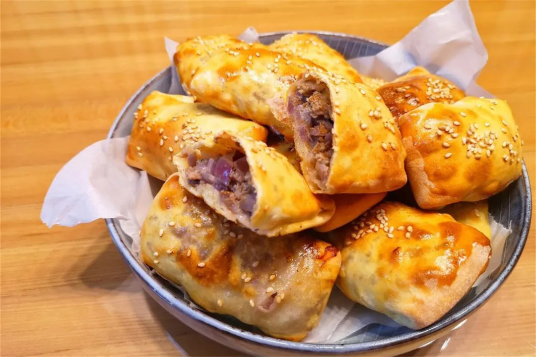 烤包子外皮薄而韌,表面略帶焦黃色,咬一口“咔滋”作響,內餡的牛羊肉香而不膩,鮮嫩多汁,洋葱的甜味和孜然的香味相互融合,口感豐富。