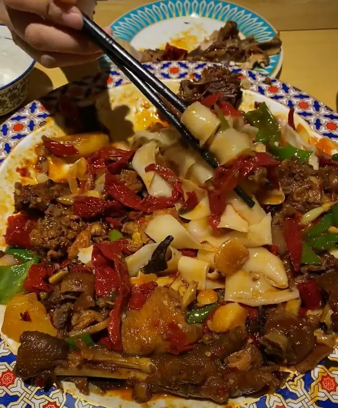 品嚐大盤雞時,人們往往會被其獨特的口感和豐富的味道所吸引。大盤雞還兼具肉食、主食、蔬菜的營養價值,經濟實惠,親朋聚會時食用尤為適宜。