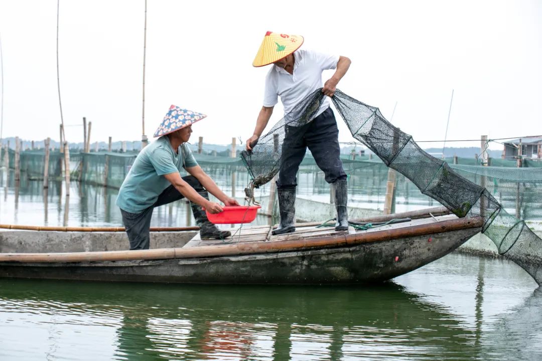 2024年9月25日,蘇州陽澄湖大閘蟹開捕,圍網養殖基地蟹農忙採收(圖|視覺中國)