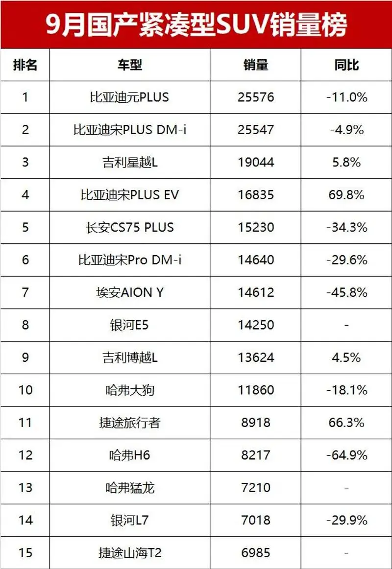 雖然銀河系列在吉利銷量大盤中的貢獻不少,但是拋開海外品牌,在國產緊湊型SUV的銷量榜中,相對暢銷的銀河E5,在剛剛過去的9月銷量僅僅排名第8。由此,也可以對吉利銀河的實力窺見一斑。