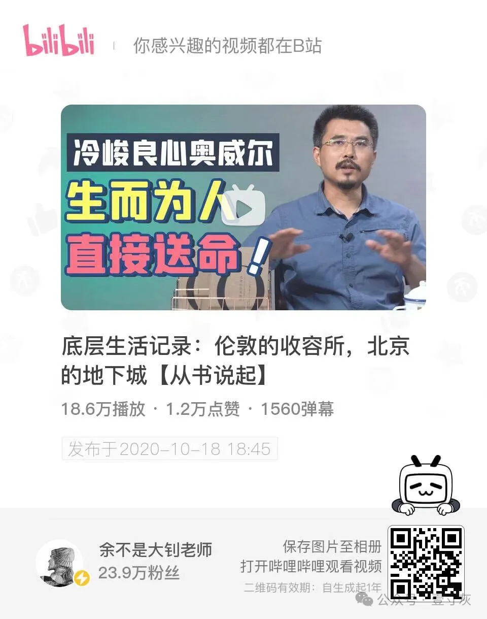 對了,我和天津工人郭德鵬認識,是因為他看到我講奧威爾《巴黎倫敦落魄記》的視頻。奧威爾以流浪漢身份混跡巴黎倫敦底層,尤其做廚師的故事激起郭德鵬的共鳴。我們這邊喜歡YY英國貴族的,若是能像奧威爾一樣去隱入基層,也算有點東西。脱口秀也是如此,不在於這種形式是否適合中國,而在於是否能立足於中國自身的經驗之上。