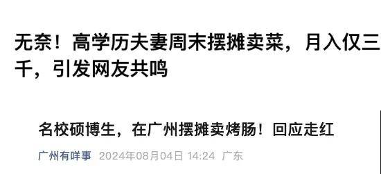 而在這些信息的另一面,有人為了養家餬口,打着幾份工,甚至連那些高學歷的學霸們,為了車子房子孩子,白天上完班,週末去擺攤賣菜補貼家用!或者去下班後去賣烤腸。