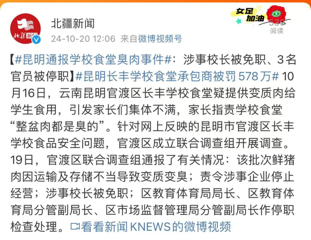昆明一所學校食堂出現臭肉:用這一招,瞬間解決學生的食品健康問題!_風聞