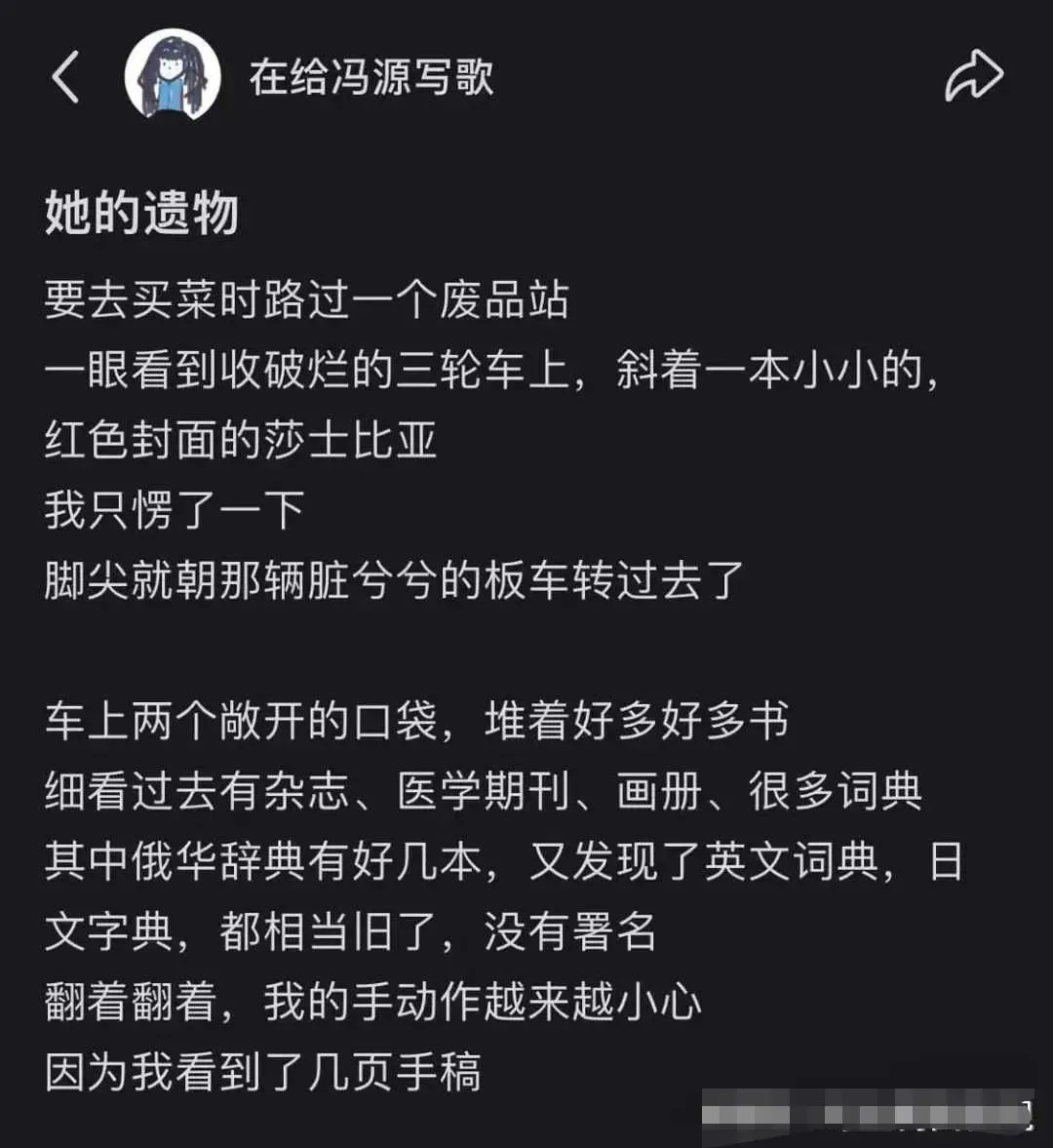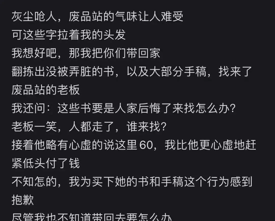 日前,一位名為“在給馮源寫歌”的博主在某平台上發佈了一則引人深思的帖子,內容講述了他在廢品站偶然購得幾本舊書和手稿,意外拼湊出一位已故科學家的人生片段。
