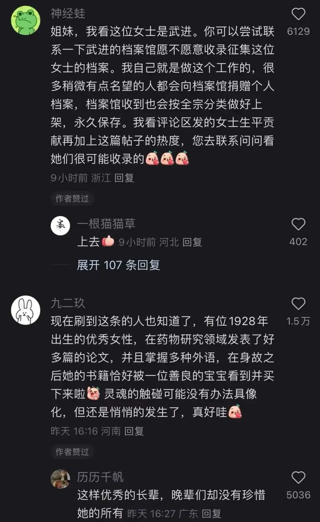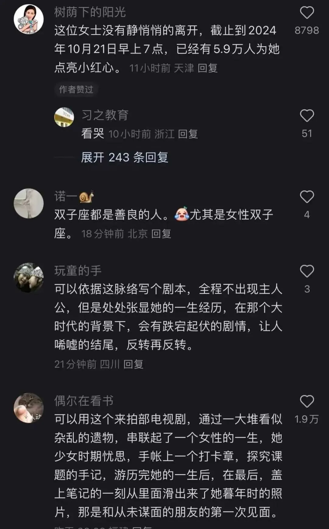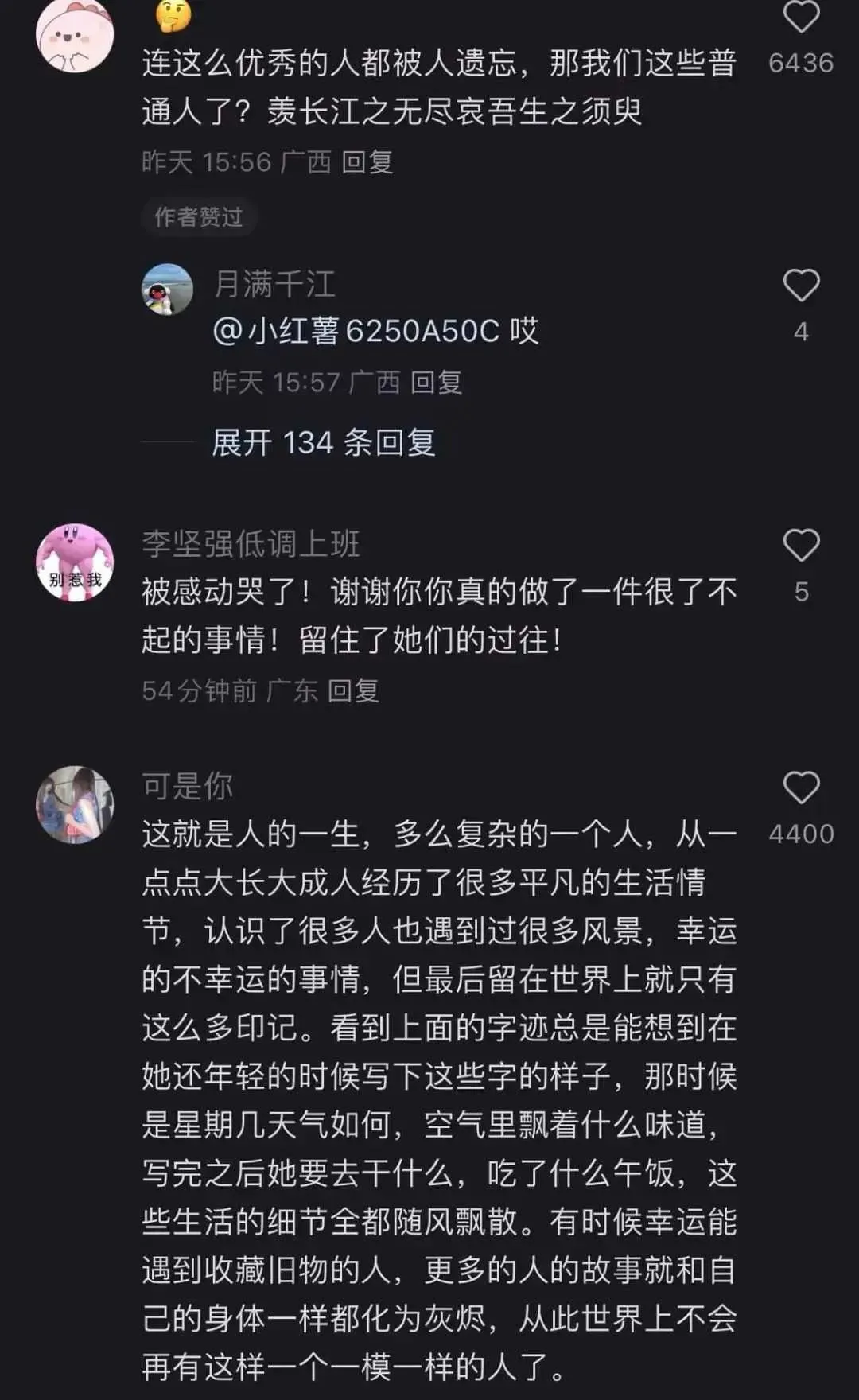 在大量留言中,不乏真情實感的表達:“這不是她無人問津的遺物,而是她留給世界的寶貴禮物。”