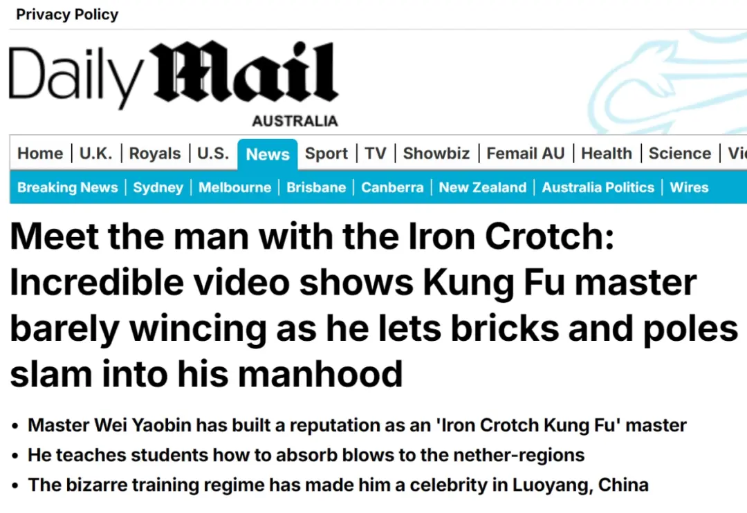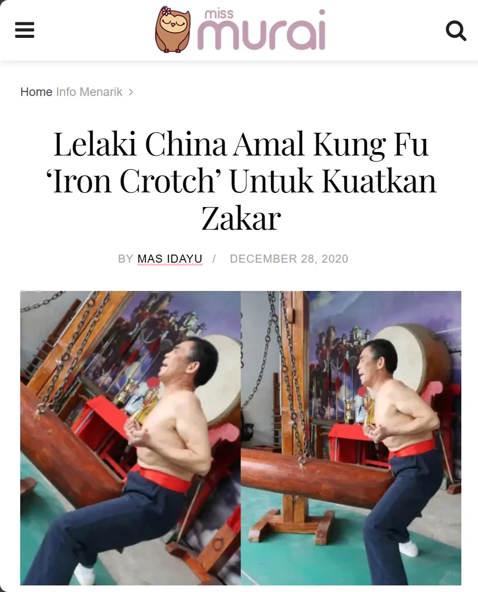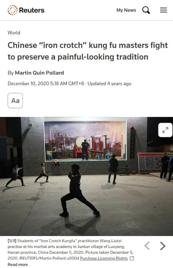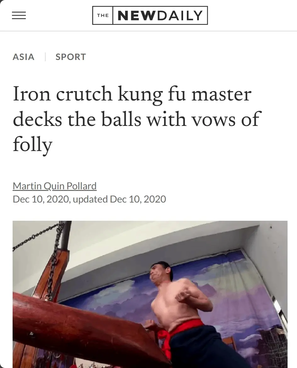 “儘管根本沒有科學證據表明鐵襠功有他所説的那種功效,但這並沒有阻止更多人開始練習這種武術。