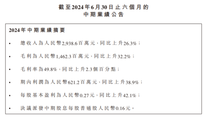 2024年8月16日,衞龍美味披露2024年中期財報,營收29.39億元,同比增長26.3%;淨利潤6.21億元,同比增長38.9%。辣條的營收佔比僅為46.1%,同比下降9.3個百分點。