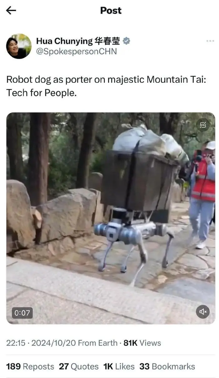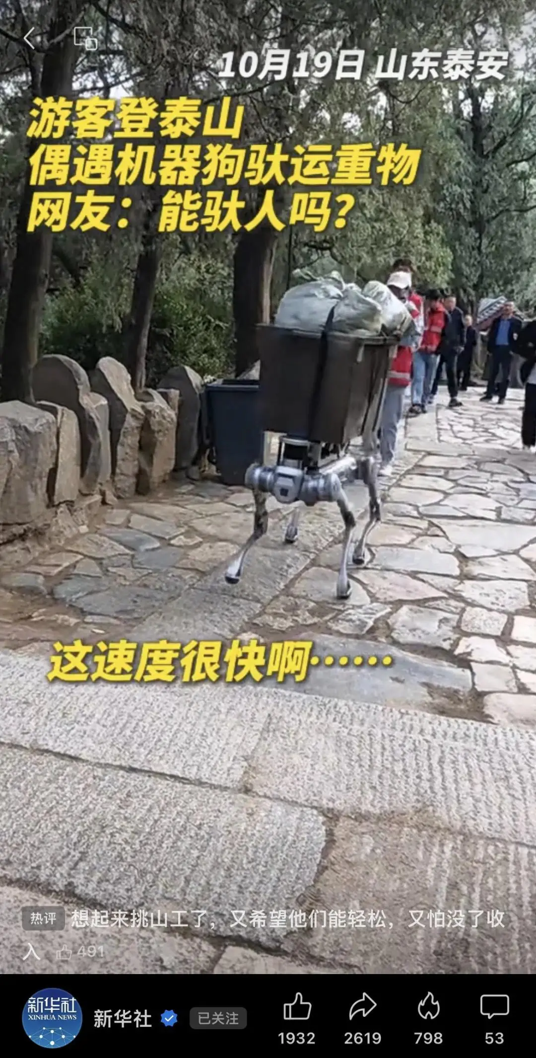 泰山上的“機器狗”刷屏,華春瑩發文點贊!網友:能馱我嗎?_風聞