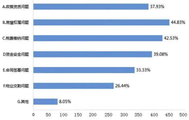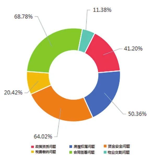 消費者最常遇到的交易糾紛類型是“房屋權屬問題”,佔比44.83%;緊隨其後的是“税費繳納問題”和“資金安全問題”,佔比分別為42.53%、39.08%。