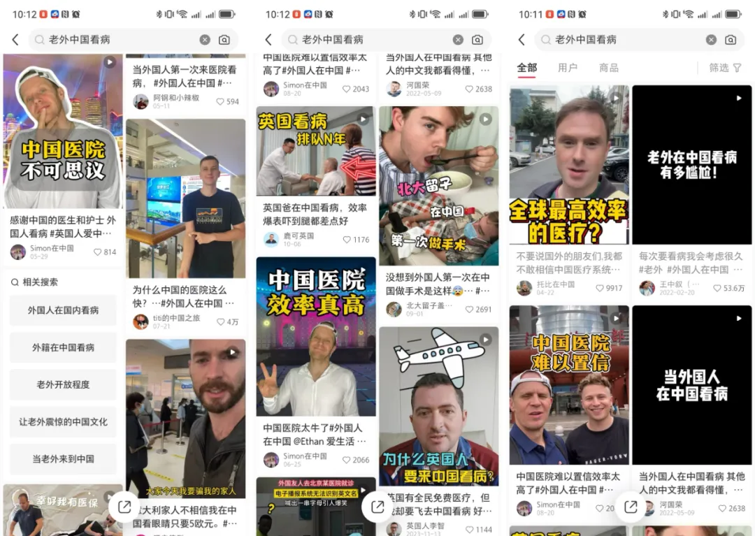 當你在這款紅色APP搜索“老外在中國看病”,你能看到一堆誇中國醫療的帖子。不止有英國人,意大利人、美國人、德國人,還有格魯吉亞、愛爾蘭這些效果,無一不在誇中國醫生、中國醫院、中國醫療。