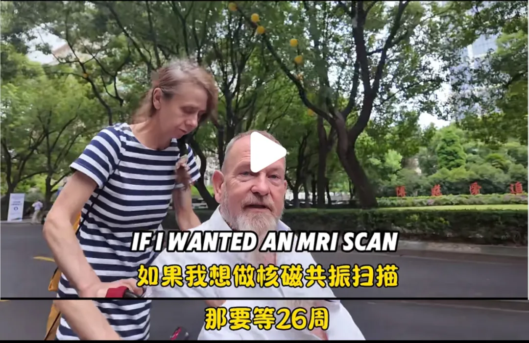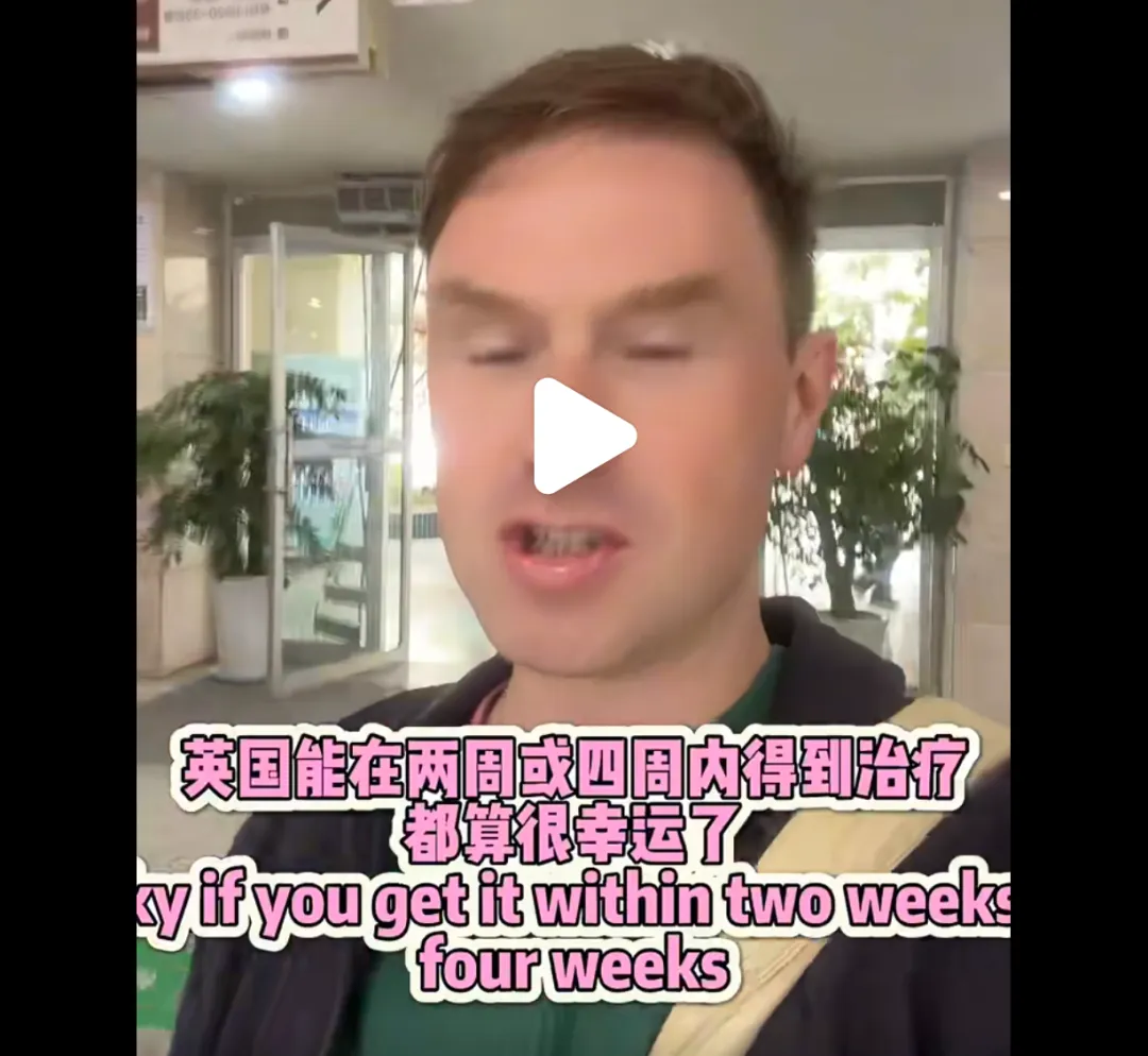 當然他也説了,NHS是免費的,中國的治療要錢。他去交錢,一共是250RMB,相當於25英鎊。這25英鎊對於他來説還是相當超值。