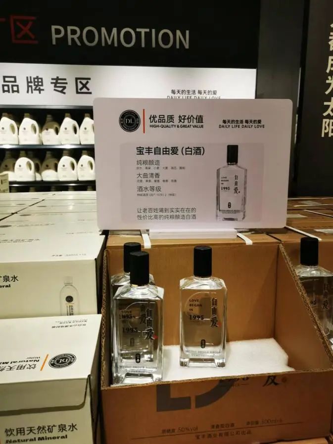 當然,胖東來經典的自營商品永輝也引進了一些,比如胖東來DL系列的商品,包括DL精釀啤酒、DL礦泉水、DL海產小食、DL燕麥片、DL洗衣液以及“自由愛”白酒等等。
