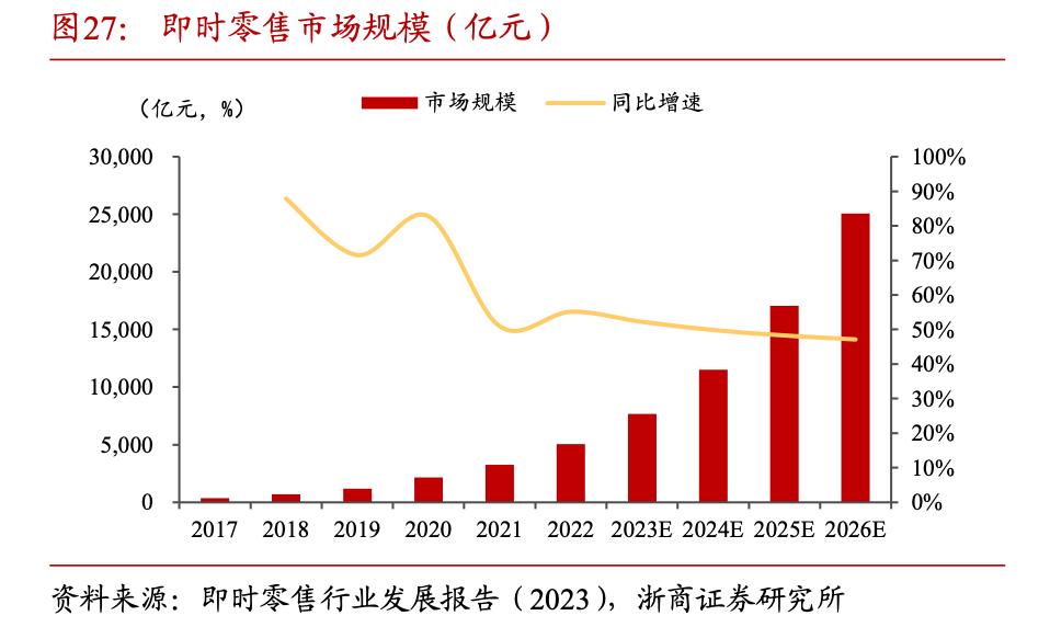 一方面,從市場規模來看,即時零售行業目前仍處於快速擴容階段。