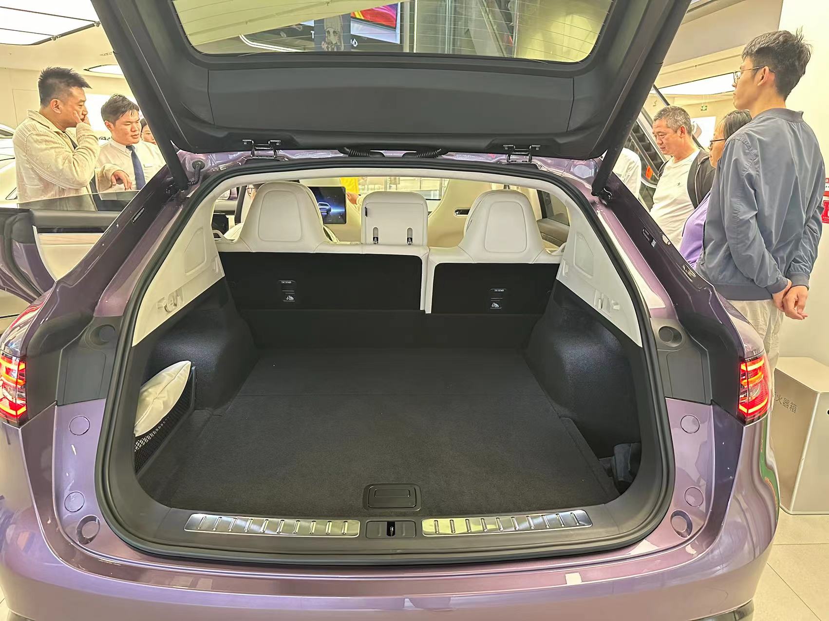 後備箱空間表現還不錯,但可以看到由於標配空氣懸掛導致後輪空間入侵了後備箱,壓縮了不少後備箱空間。而對我這種機械懸掛黨來説,標配空氣懸掛並不是一個加分項,還不如給我便宜一萬五去掉空氣懸掛,就一套前雙後五完事。