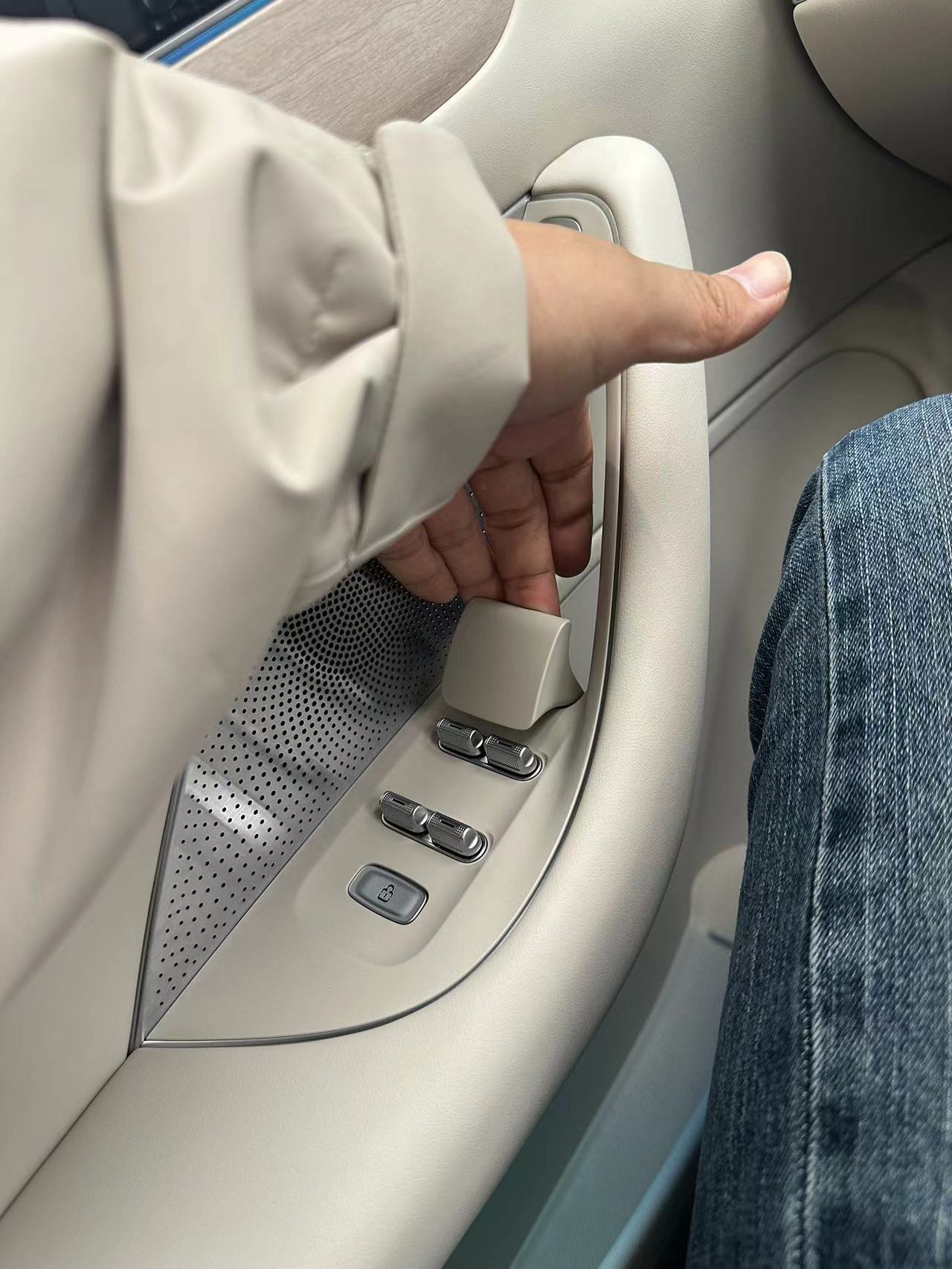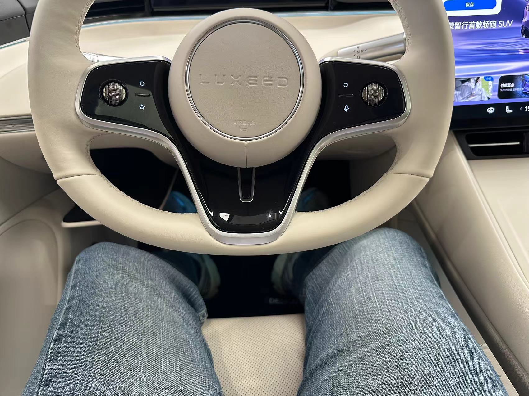 車的座椅讓我挺滿意,長度可調、椅面角度可調,支撐很是飽滿,而且頭部空間充足、坐姿可以很正。車門的緊急機械開關沒有如別的車型一樣放在陰間位置而是就在車門扶手上,這點好評。方向盤還是特斯拉那種兩個大珠子盤的設計,而且按鈕還是電容觸摸式。這就讓我挺不滿,十字按鈕+功能鍵更符合傳統操作習慣也不會發生誤觸,按下去反饋也更為明確。