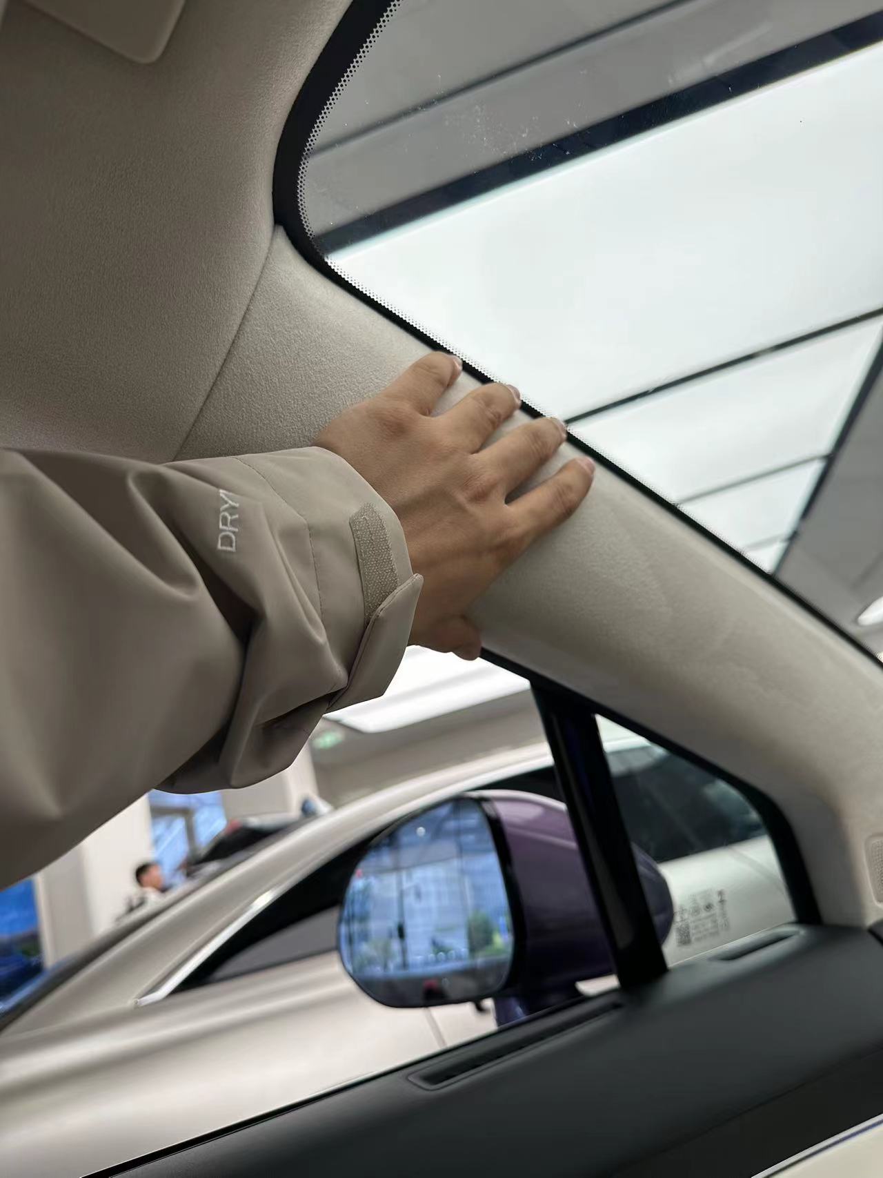 而且坐進去後還有一個挺嚴重的問題,那就過於粗壯的A柱很遮擋視線。正常來説A柱哪怕為了強度要做的粗,也會在視線方向上進行優化,儘量減少這方向的投影面積以及對視線的阻擋,比如把A柱截面形狀做成梯形。而智界R7的A柱就是實打實的一個長方形截面A柱,而且其A柱比另一款以撞擊安全出名的車還要粗上三分之一左右。我能理解為了成員安全A柱要結實,但如果你要這麼粗的A柱才能保障安全,那這設計水平還真需要提升下。