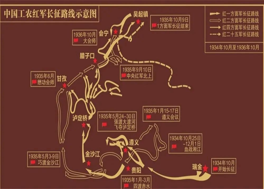 這是一支英勇頑強的隊伍。他們征服了連綿雪山,穿越了沼澤草地,跨過了大江大河,縱橫十餘省,最遠行程兩萬五千裏。