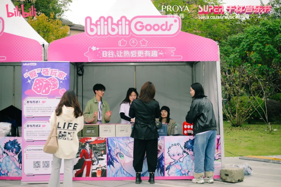 在去往Up Free Stage舞台的路上,可以一路偶遇《時光代理人》動畫、天官賜福、鎮魂街等國漫IP的展區,隨着路牌指示,還可以前往bilibiliGoods展位,除了現場購買精美周邊,完成打卡任務即可參與互動領獎品。