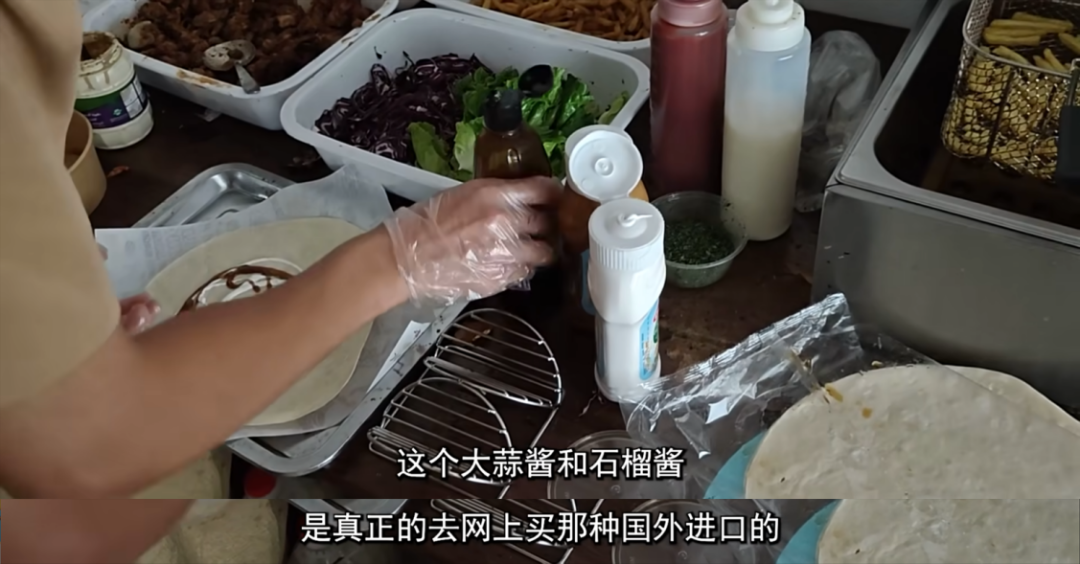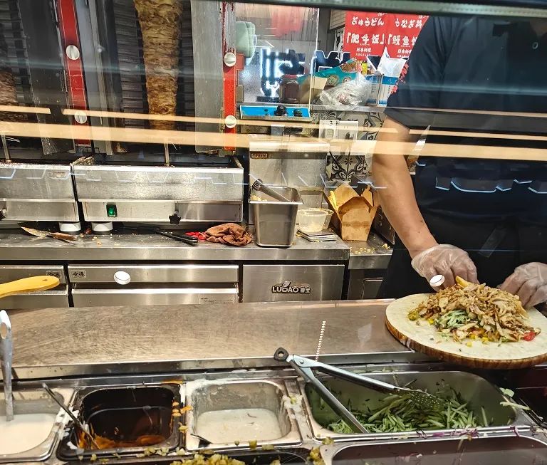 我見到的一位店主,便是靠純手動切肉放配料加捲餅,在我下單到吃完捲餅的十分鐘時間裏,應付了三單外賣訂單,捲餅的手一刻閒不下來。再怎麼説,現實中的商家也不會像一些擺爛流玩家那樣,只給顧客吃白餅,最後還有錢拿。我邊吃邊想,這位店主理應準備一台自動切肉機。