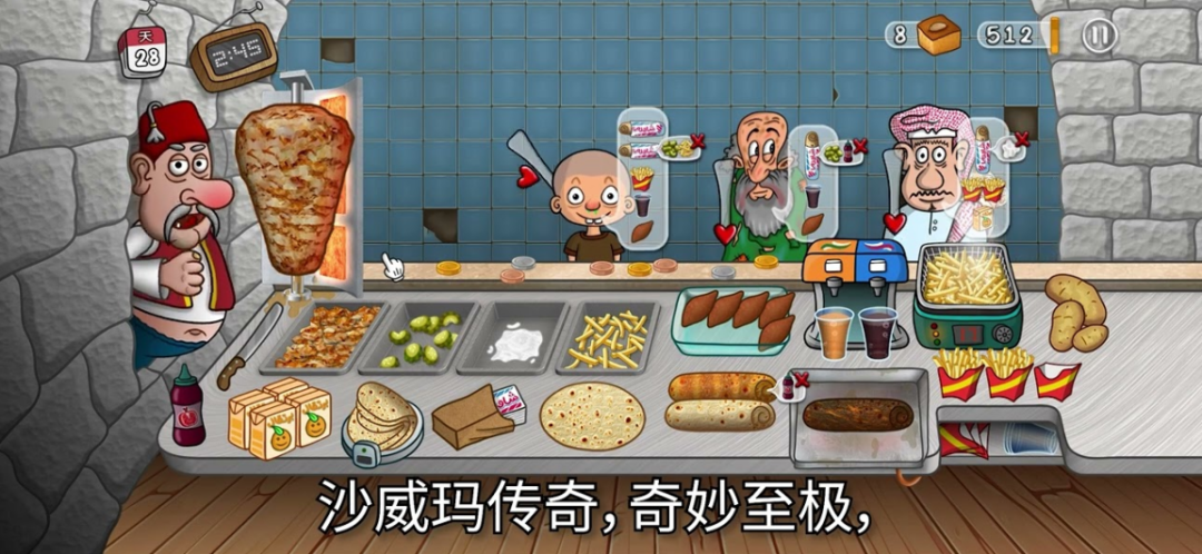 直至一款模擬經營小遊戲在國內的翻紅,為烤肉捲餅的吃法帶來了空前的曝光度。這遊戲就是《沙威瑪傳奇》——讓玩家制作沙威瑪捲餅,賣給顧客賺取收入的小遊戲。