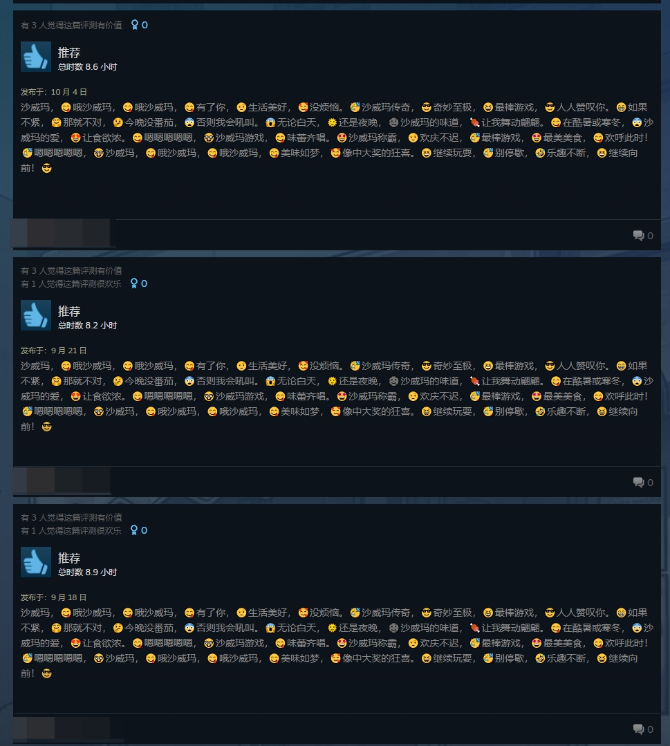 這一方面可以認為這是踩到了當下的“AI抽象”紅利,以至於迅速被轉化為新興網絡梗,成為一種社交貨幣。身邊的朋友和關注的Up主前一天還會把“沙威瑪”跟沙琪瑪搞混,後一天就忍不住輕哼“有了你(沙威瑪)生活美好沒煩惱”——到了這一步,遊戲本身到底好不好玩就已經不再那麼重要了。