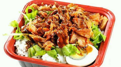 旋轉的鐵棍上,串着由醃肉片疊成的誘人肉山,用刀切下幾塊,夾進餅裏就是肉夾饃;蓋在米飯上再加點配菜擠點醬,就是烤肉拌飯。