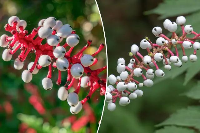 這些果實緊密地簇生在花莖上,看起來就像是一串掛在樹枝上的小珠子,彷彿一個個沉默的觀察者,散發出一種神秘的氣息。也因此,它有了一個俗名:“洋娃娃的眼睛”(doll‘s eye)。此時,花梗會變粗並變成鮮紅色。