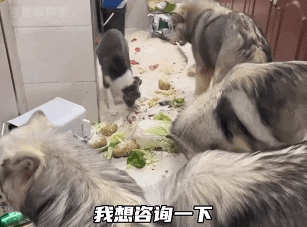 衣服、紙巾、廚房裏的菜、肉全散一地。