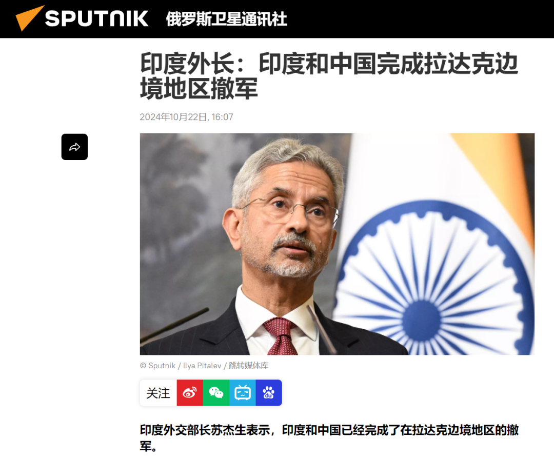 當地時間10月21日,印度外交部長蘇傑生公開表示,中印已經就邊境巡邏問題達成了協議,雙方脱離接觸進程已經完成,並恢復到了2020年的位置,具體細節將在適當時機公佈。