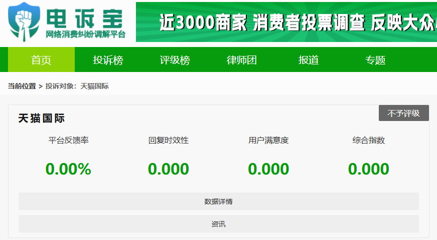 【案例一】用户投訴“天貓國際”虛假髮貨 平台不予不處理