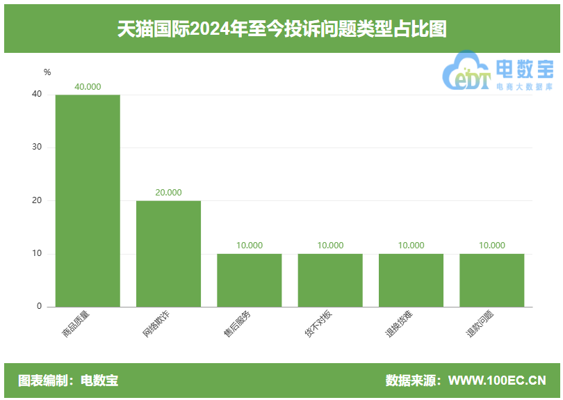 此外,“電訴寶”受理用户維權案例顯示,天貓國際還疑似存在商品質量、網絡欺詐、售後服務、貨不對板、退換貨難、退款問題等問題。