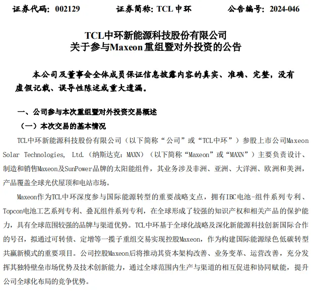當被問及為何要推動控股Maxeon時,TCL中環表示,Maxeon作為其深度參與國際能源轉型的重要戰略支點,有助於提升公司全球化佈局的競爭優勢。