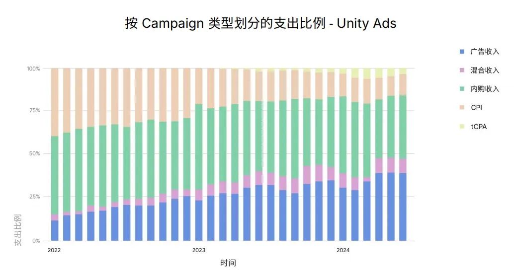ironSource Ads 和 Unity Ads 的廣告活動中,CPI(每次安裝成本)廣告這種淺層次的優化目標的佔比在逐步減少。
