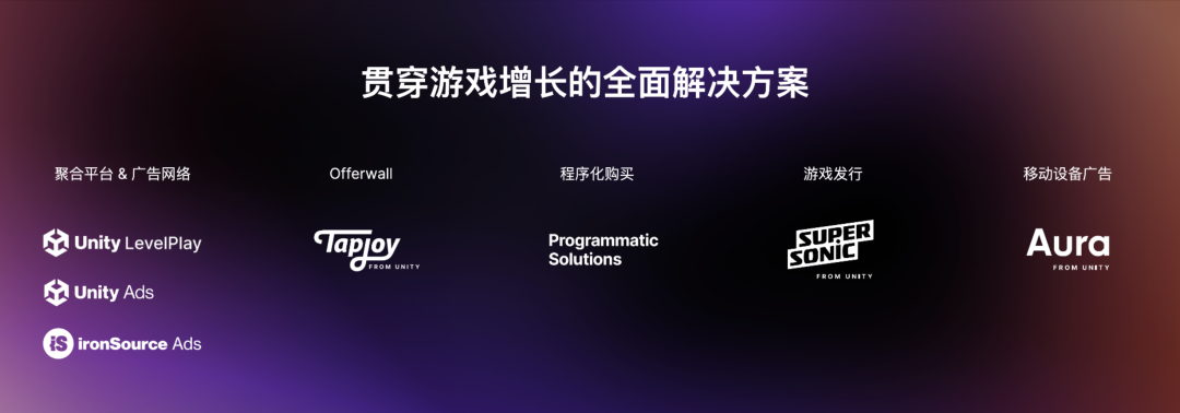 Unity提供的Unity LevelPlay聚合平台、Unity Ads+ironSource Ads廣告網絡、Tapjoy Offerwall廣告網絡、Supersonic手遊發行解決方案等一系列增長與變現解決方案可以在不同階段、從不同維度幫助開發者更好地實現用户價值和商業價值。