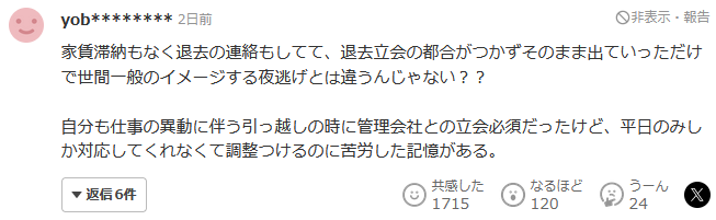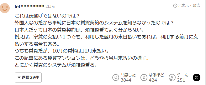 這不是夜逃吧?因為是外國人,所以單純不知道日本的租賃合同系統吧?