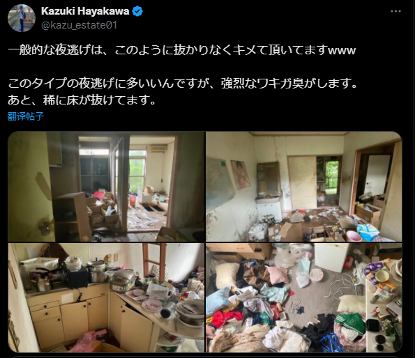 這件事在推特火了之後,媒體也進行了採訪報道。房東廣島大家表示,自己之前也遇到過跑路的租客,都是室內被搞得一塌糊塗。