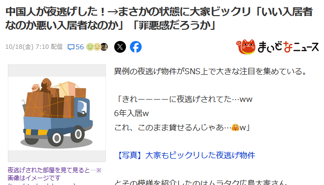 中國租客居住6年退租前連夜跑路!日本房東打開門看到眼前這一幕驚呆了…_風聞
