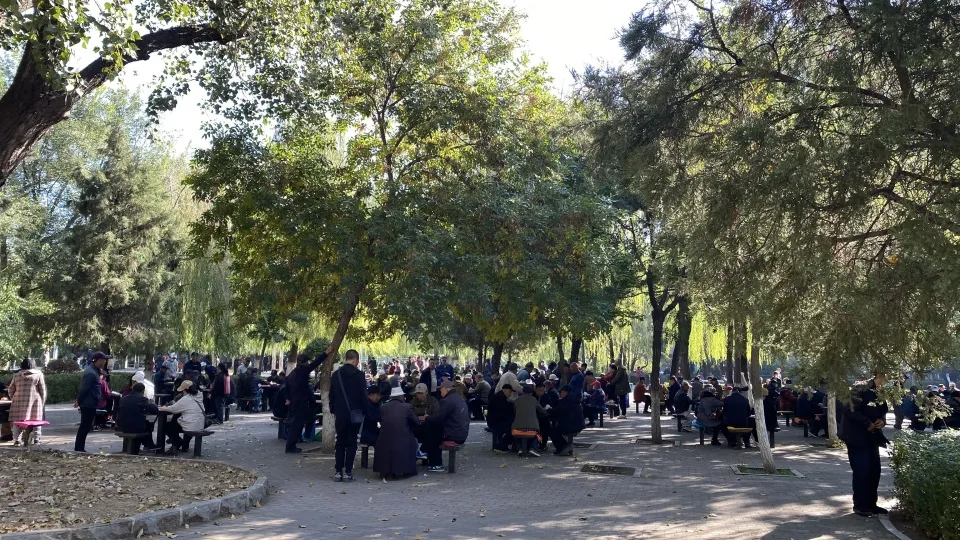 △ 鐵嶺文化公園內,老年人們打牌、下棋來消磨時間 時代週報 李杭/攝