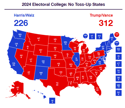 按照這個趨勢發展的話,特朗普將在大選中取得壓倒性的勝利。如下圖。