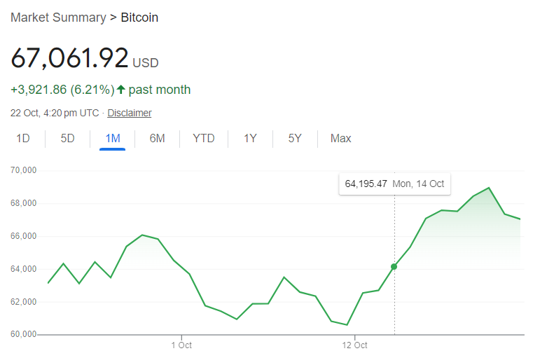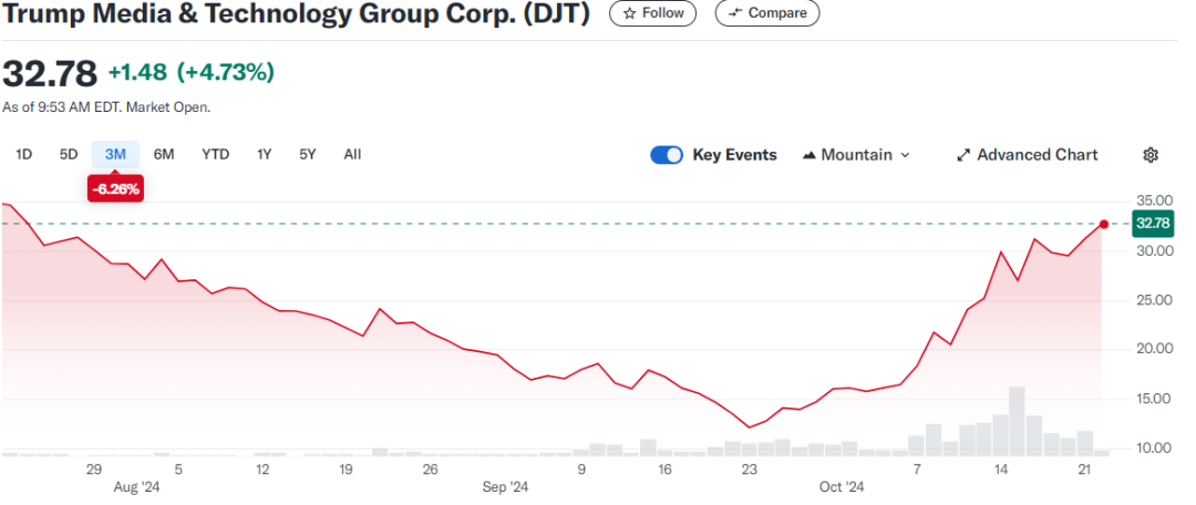 DJT控有特朗普旗下的社交媒體Truth Social,被認為是特朗普政治在市場上最直接的風向標。9月下旬開始上漲,過去一個月內上漲169%,説明市場押注特朗普贏得本次大選。