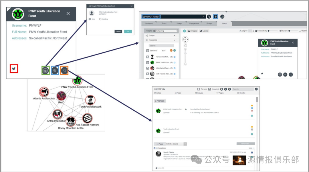 手冊還專門介紹了反法西斯太平洋西北青年解放陣線的社交網絡,這是一個“去中心化網絡”,其網站在報告發布前的幾個月裏似乎已經停止活動。