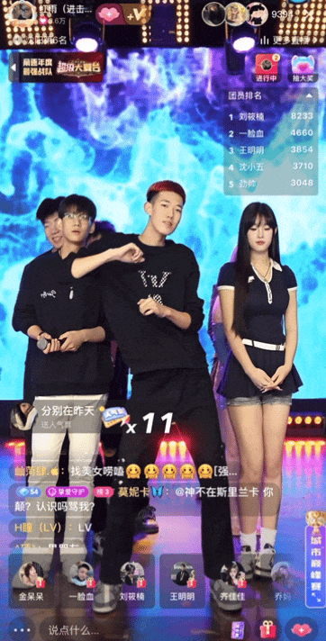 直播的流程基本固定:每位主播依次表演才藝,站位則按前一天的排名決定。排名靠後的人,在兩小時的直播裏,得到出現在舞台中央的機會寥寥無幾。若粉絲想讓支持的主播多露臉,就得刷禮物提升他的排名。