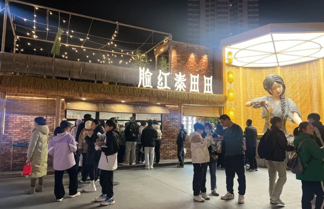 恰逢一波寒流,原本熱鬧的小吃街當天遊客並不多,但臉紅秦田田的門口,穿着羽絨服、大衣等點單的顧客,已經排起了長隊。