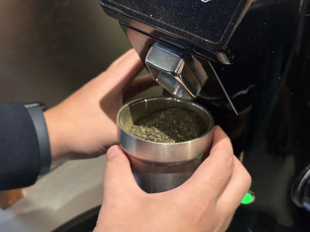“用磨茶機磨粉,需要設置參數,而且有的茶不適合用機器磨粉,比如白茶就更適合手工搗碎,既能保留部分葉片,也不會讓茶的苦澀味釋放過重。”金聖楠説。