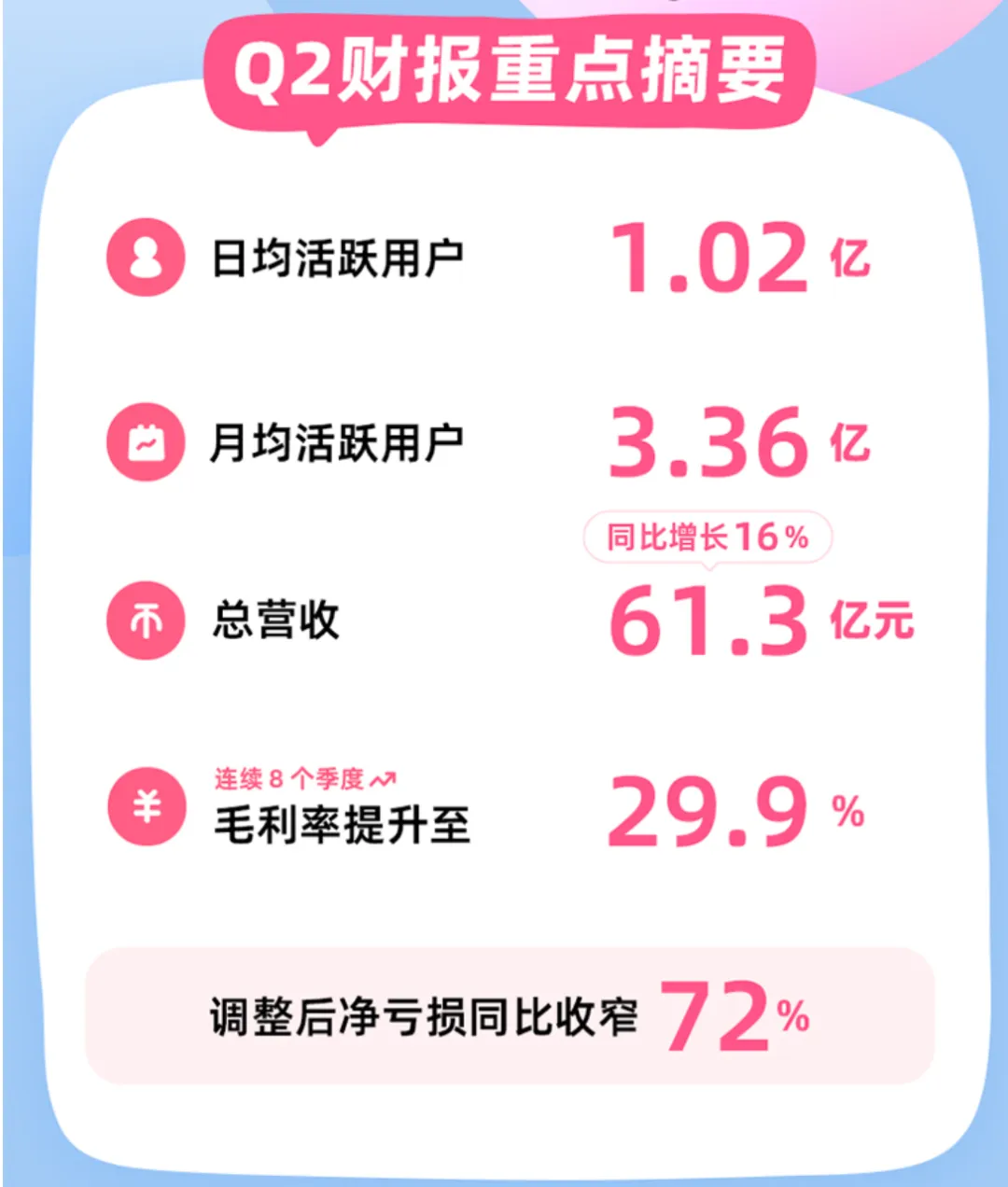 B站公佈了今年第二季度未經審計的財務報告。報告顯示,該季度公司總營收同比增長了16%,達到人民幣61.3億元。儘管淨虧損額仍然高達人民幣6.08億元,但相較於去年同期已經大幅縮減了61%;而經過調整後的淨虧損則為人民幣2.71億元,同比縮減了72%。
