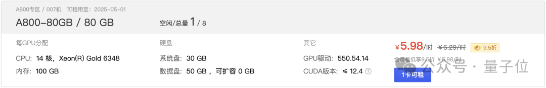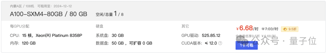 國內情況亦是如此,A100(80GB)租用價低至6.68元/小時,40GB為3.28元/時,A800則是5.98元/小時。